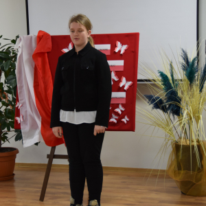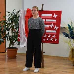 Promocję do etapu Powiatowego Konkursu Recytatorskiego Poezji Patriotycznej, który odbędzie się 21 listopada 2025 roku w Miejskiej Bibliotece Publicznej im. Tomasza Zamoyskiego w Tomaszowie Lubelskim otrzymują: