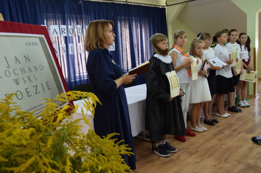 Tegoroczna edycja Narodowego Czytania została zorganizowane przez Bibliotekę Publiczną Gminy Krynice oraz Gminny Ośrodek Kultury w Krynicach. Wydarzenie odbyło się 09.09.2025r. i było znakomitą okazją do tego, aby przypomnieć sobie najpiękniejsze pieśni, wzruszające treny czy humorystyczne fraszki znakomitego poety jakim był Jan Kochanowski.