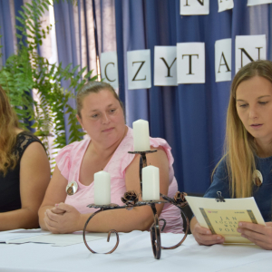 Lektorów i słuchaczy powitała dyrektor Gminnego Ośrodka Kultury w Krynicach Pani Joanna Jamroż, a list od Prezydenta RP Andrzeja Dudy odczytał wójt gminy Krynice Jacek Wiśniewski. Całość przedsięwzięcia poprowadziła Anna Saputa, która relacjonując wybrane utwory Jana Kochanowskiego zapowiadała kolejność czytań. W roli lektorów wystąpił przedstawiciel Rady Powiatu w osobie Leszka Kołodzieja, Przewodnicząca Rady Gminy Krynice Krystyna Baj, z-ca przewodniczącej Rady Gminy Krynice Agnieszka Miłobóg -Jasińska , Radne Elżbieta Baran i Katarzyna Kowalska. Z gminnych jednostek samorządowych wystąpili pracownicy UG Sylwia Pitura, Agnieszka Michalczuk, Magdalena Baj-Sowa, kierownik GOPS Jerzy Łaszkiewicz wraz z Eweliną Chroń i Joanną Szeremetą, druhowie z OSP Zadnoga Beata Kołodziej, seniorzy w osobie Barbary Popik, Krystyny Oryszczak, Teresy Rycak, Krystyny Hałasa i pana Andrzeja Hordyja. W gonie reprezentantów sołtysów znalazły się panie: Małgorzata Borek, Magdalena Stopa i Urszula Rycak -Cik. Swoją obecność zaznaczyły również czytelniczki naszej biblioteki: Krystyna Chwaleba, Magdalena Prochowicz i Bożena Czerwińska, jak i Pani Jadwiga Sidor prezes stowarzyszenia-Krynice dla Roztocza. Serdeczne podziękowania kieruję do Pani Dyrektor ZSP w Krynicach Anety Stanisławek i wicedyrektor Pani Anny Kochan za zaangażowanie młodzieży szkolnej do naszego przedsięwzięcia. Szczególne ukłony za inscenizację i prezentację utworów kieruję w stronę społeczności uczniowskiej z ZSP w Krynicach, która pod okiem pań polonistek Anny Parfin i Aliny Perdun przygotowała wybrane utwory, którymi uświetniła wczorajsze wydarzenie.