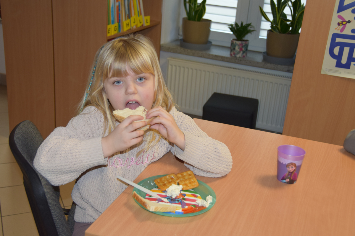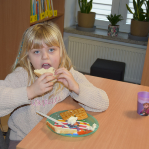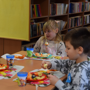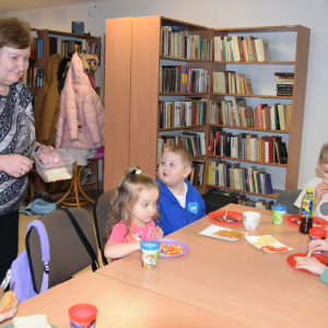 Uczestnicy naszych spotkań mieli okazję wykazać się zdolnościami plastycznymi wykonując kolorowe maski karnawałowe, rysunki zainspirowane przeczytaną książką czy okolicznościowe kartki na Dzień Kobiet. Nasi mali Feriowicze wykazali niemałe zdolności kulinarne, gdzie powstawały pyszne owocowe szaszłyki, tosty, kolorowe kanapki na krakersach czy galaretka owocowa z bitą śmietaną. Rozwiązywanie zimowych zgadywanek, zabawa w kalambury czy prezentacja ulubionych zabawek wywoływała uśmiech na twarzach naszych milusińskich. W tych dniach nie mogło zabraknąć filmów edukacyjnych, pokazujących jak bezpiecznie bawić się podczas ferii i gdzie oraz pod jakim numerem telefonu szukać pomocy w razie nieprzewidzianej sytuacji.