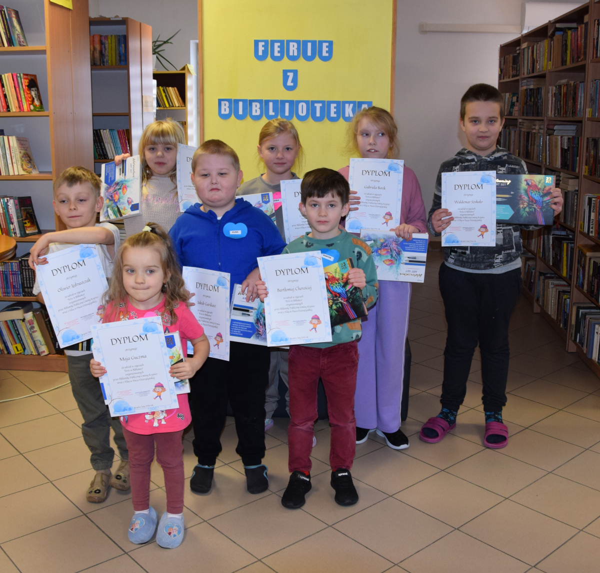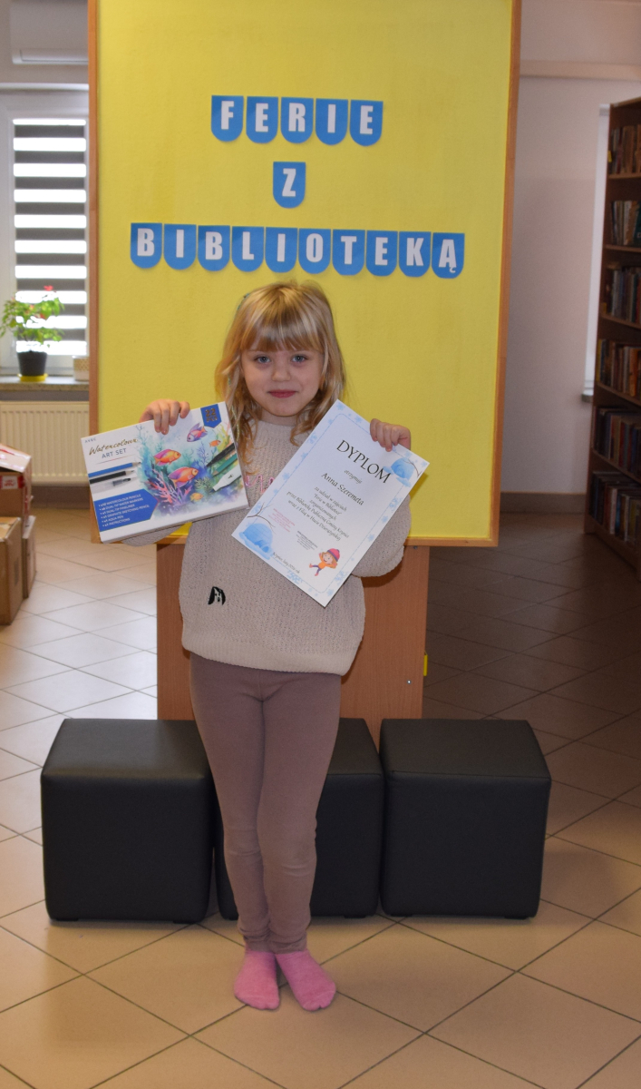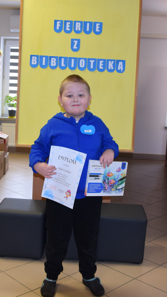 Finalnie uczestnicy zimowej akcji bibliotecznej za udział w wydarzeniu odebrali upominki i pamiątkowe dyplomy. Minione trzy dni były czasem pełnym radości, kreatywności i dobrej energii. Każdy dzień przynosił nowe wyzwania i inspiracje. Tegoroczne zajęcia pokazały, że książka może być początkiem niezwykłej przygody, a wspólnie spędzony czas – źródłem pięknych wspomnień. Był to doskonały czas na rozwijanie pasji i zainteresowań.