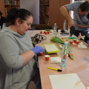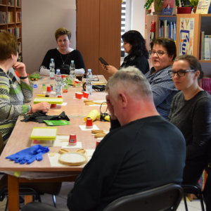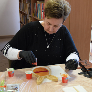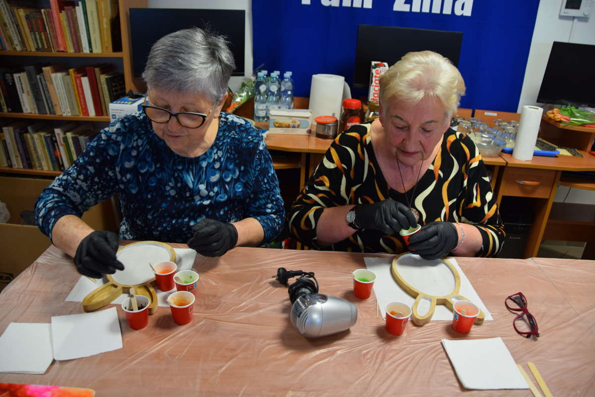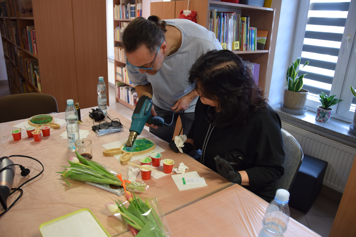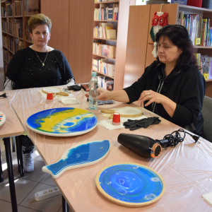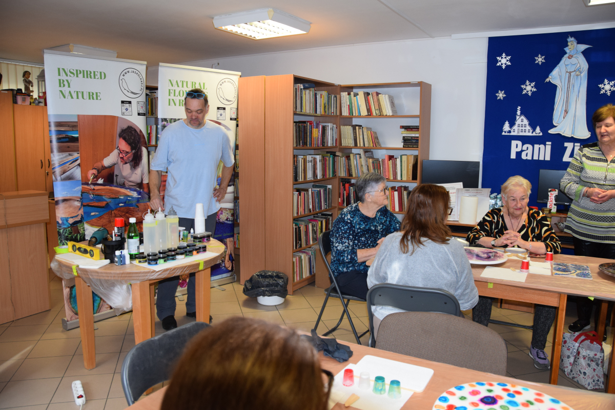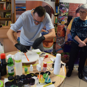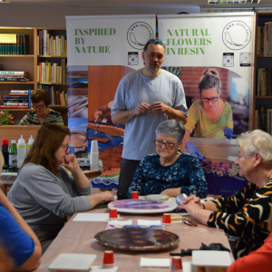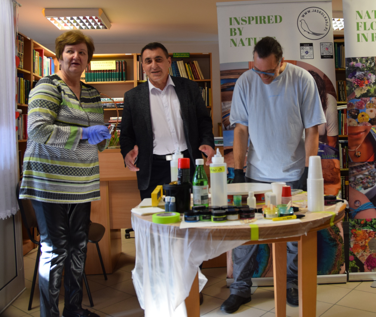 Wspólne warsztaty artystyczne, zorganizowane przez bibliotekę, przyciągnęły miłośników rękodzieła w różnym wieku. Głównym celem spotkania była nauka pracy z żywicą epoksydową, która staje się coraz popularniejsza w tworzeniu autorskiej biżuterii, dekoracji oraz przedmiotów użytkowych.