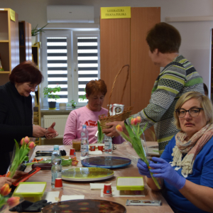 Warsztaty były nie tylko okazją do zdobycia nowych umiejętności, ale także do integracji lokalnej społeczności. Miłym akcentem była wizyta Wójta Gminy Krynice Pana Jacka Wiśniewskiego, który zachęcił uczestników do kreatywnej pracy i aby podkreślić akcent zbliżającego się święta Dnia Kobiet, które miało miejsce dzień później, wręczył Paniom kwiatki oraz słodkie czekoladki.